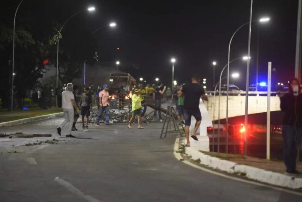 Câmeras da Secretaria de Segurança Pública do Distrito Federal (SSP-DF) captaram como os vândalos espalharam o medo pelas vias S1 e N1 do Eixo Monumental, mesmo com patrulhamento ostensivo na região. Em uma delas, é possível ver extremistas queimarem caçambas de lixo e correrem pela pista sem serem abordados por policiais.